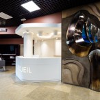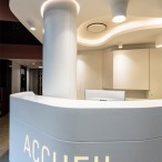 Le concept architectural propose est une banque d’accueil dont le design extérieur est déforme par les différents flux traversant le hall d’entrée mais aussi une érosion par rapport aux besoins des usagers a l’intérieur de la banque (poste informatique, rangement,…).Les courbes générées permettent alors de créer des situations de travail variées: les agents d’accueil peuvent, en front office, orienter quelqu’un, prendre plus de temps et s’asseoir ou travailler en back office derrière la sculpture. La forme du projet est  blanche et épurée contenu du contexte chargé et sombre. Le matériau répondant le mieux a ce design est le Korian, matériau extrêmement fluide qui peut être façonné en pratiquement n’importe quelle forme.