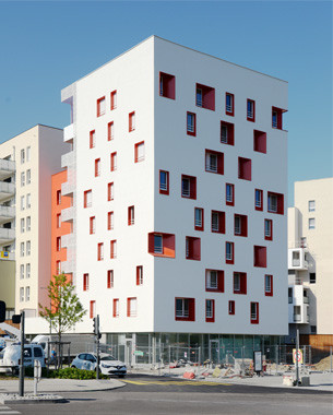 11 tours de logement vont marquer l’entrée de ville. Les architectes grenoblois se prêtent au jeu de la la tour aux dimensions contraintes. 10 étages, une base carré de 19x19m, sur-toiture obligatoire : exercice de style !